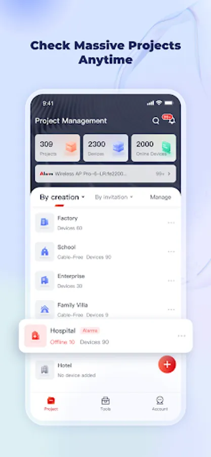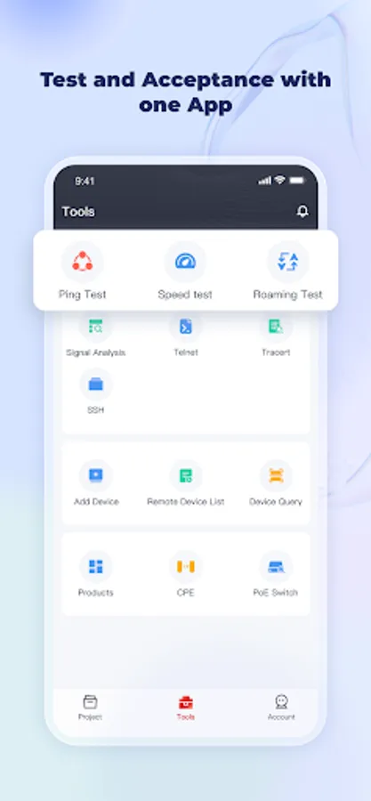 Through the IP-COM ProFi App, you can create projects, connect field devices to the cloud, manage and debug device configuration, and use the built-in toolbox to quickly detect network quality and troubleshoot. You can also remotely configure and optimize the network through the IP-COM ProFi App in the office, which truly realizes the remote management and maintenance of your network through your mobile phone anytime, anywhere.