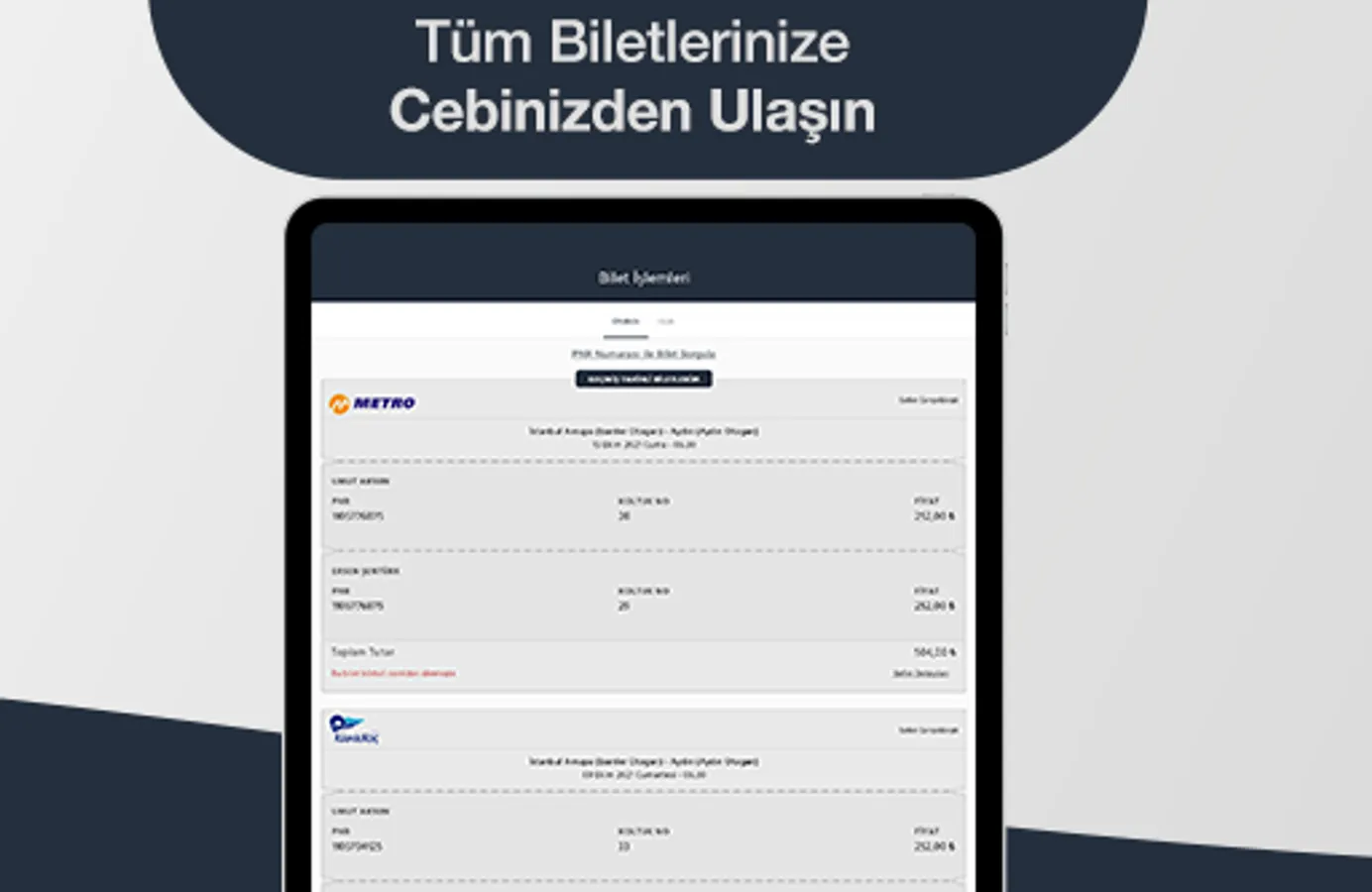 If you cannot find the sms and e-mail containing the information about your economic ticket that you have purchased or reserved, you can view your previously purchased or booked flight and bus ticket transactions from the My Profile menu in the application. You can view the tickets you have purchased by logging in on biletall.com.tr website.