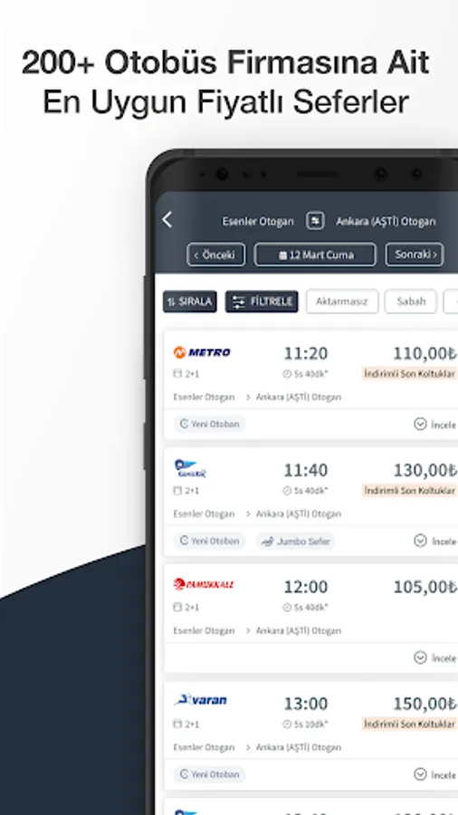 Turkey's largest bus ticket application of Ankara with Biletall, Istanbul, Izmir, Adana, Kayseri, Bursa, Trabzon, Samsun, Aydin, Izmir, Diyarbakir and Turkey's bus ticket you are looking for the 81 cities, comparing the in more than 200 companies of the expeditions, You can find the cheapest bus ticket. You can choose the bus you want to travel, choose the seat you want, and buy your bus ticket safely within minutes.