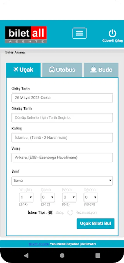 Now, as an agency, you will be able to benefit from Biletall's wide company network, cheap and fast service. You can search domestic and international flights of more than 500 companies such as İdo, Ulusoy, Metro Turizm, Varan, Süha, Seç, THY, Pegasus, Atlasjet, Onur Air, Anadolu Jet, issue bulk tickets, and complete all your invoicing and payment transactions (Credit). Card, Agency definitions, Prepayment loading, Invoice Requests, Babs Form) you can easily do with the application.