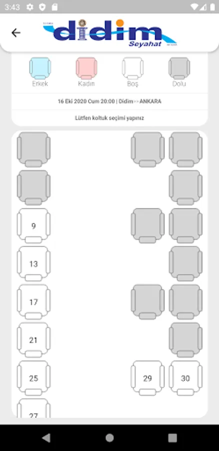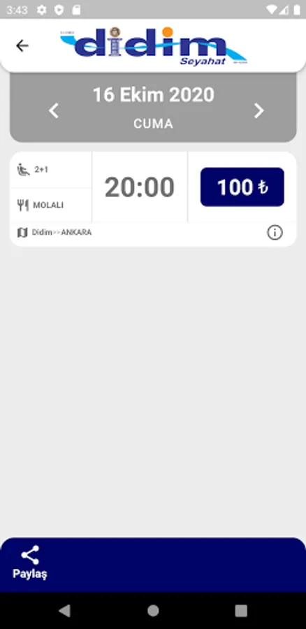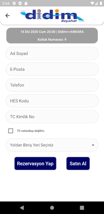 Didim Tourism's intercity transportation is an Android application that allows the sale of tickets.