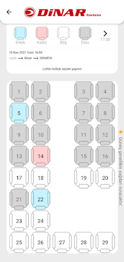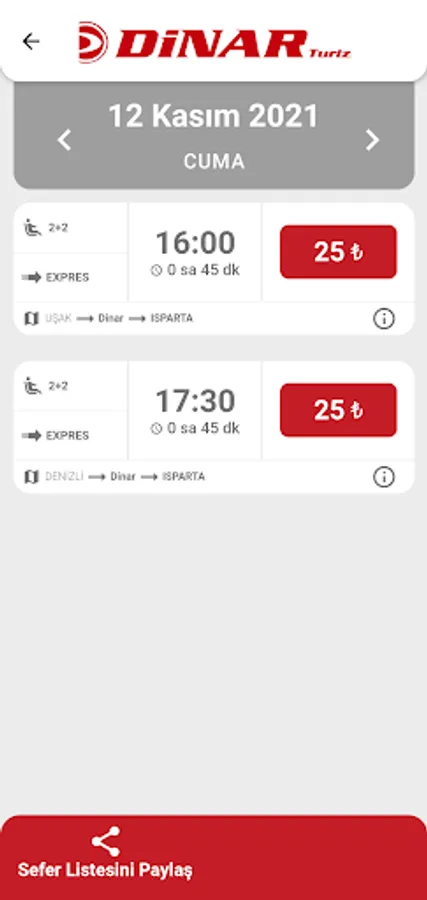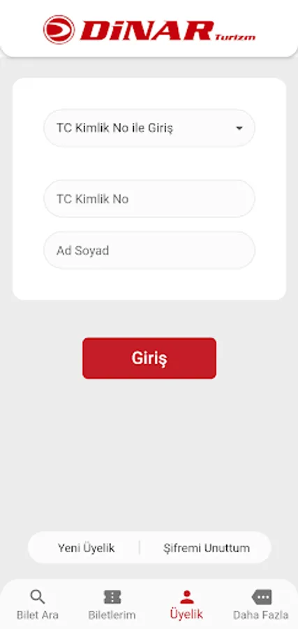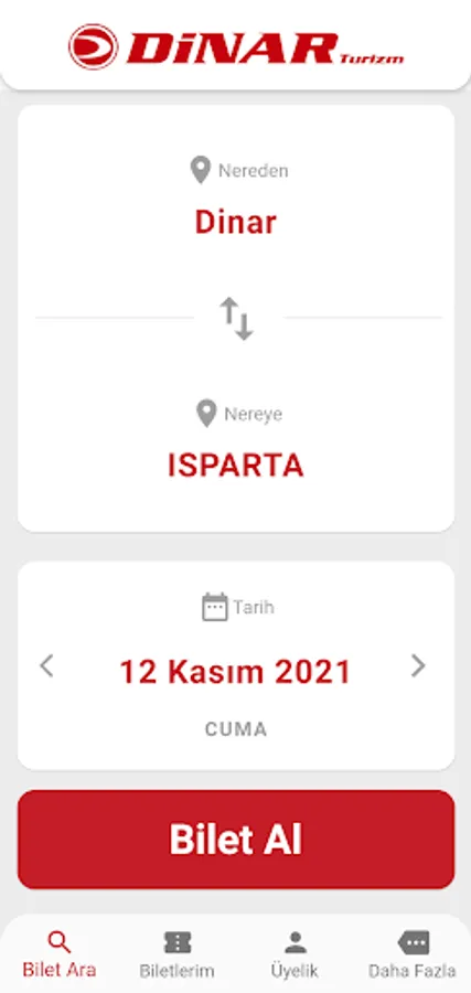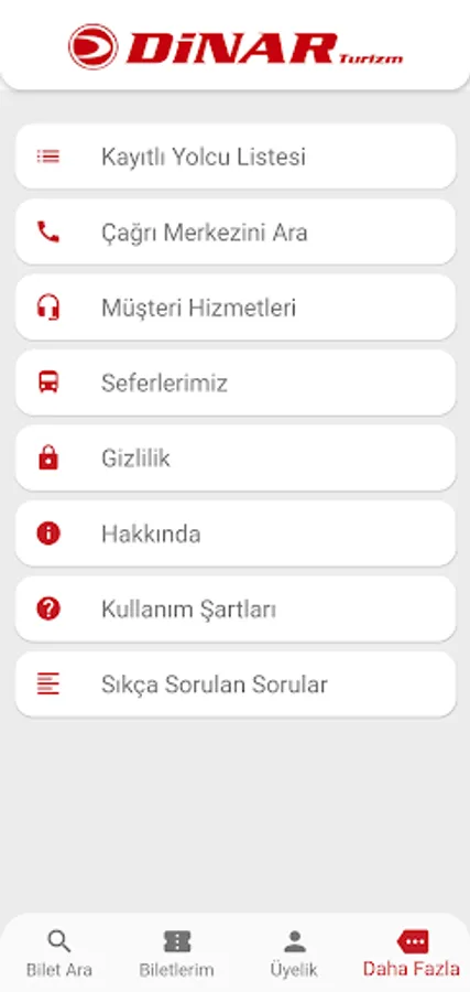 Dinar Turizm'in şehirlerarası ulaşım biletlerinin satılmasını sağlayan bir Android uygulamasıdır.