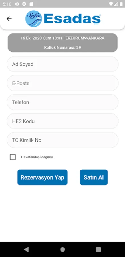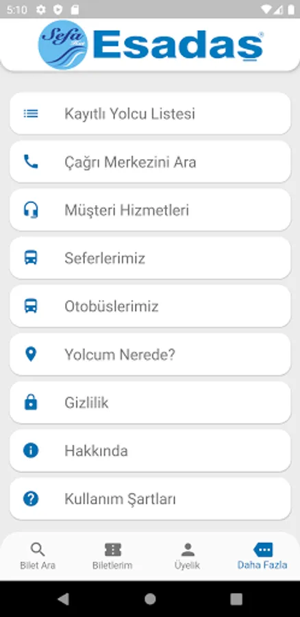 Esadaş Turizm'in şehirlerarası ulaşım biletlerinin satılmasını sağlayan bir Android uygulamasıdır.