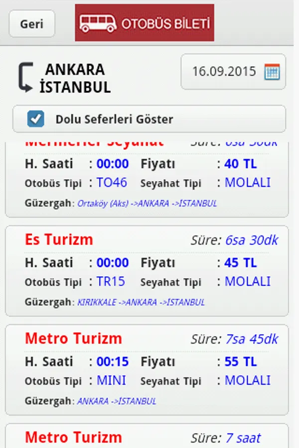 Metro and Bus Tickets implementation of tourism, Ulusoy, Varan Select Tourism, Suha Tourism, South Mediterranean Travel, Balıkesir Uludag Tourism, Lake Van, tourism, Hasan Tourism Mersin Tourism, Esadas, Isparta Oil, İsmail Ayaz, Kanberoğlu Tourism, Luxury Mersin Star Diyarbakır and Adana can buy a new ticket of tourism as more than 110 intercity bus company, you can reserve the tickets you want.