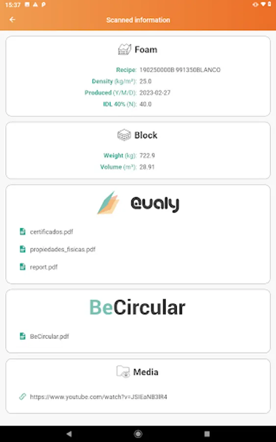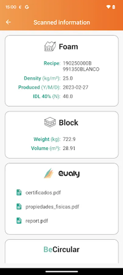 having access through the App to the manufacturing data of the foam, following the concept of circular economy.