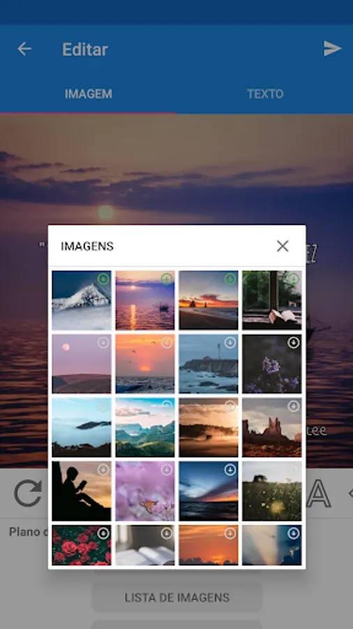 When sharing a quote you can select beautiful images present in the app or if you prefer you can choose your own photos from the gallery and use them as the background.