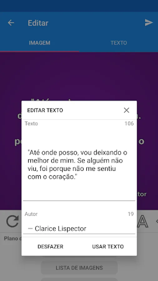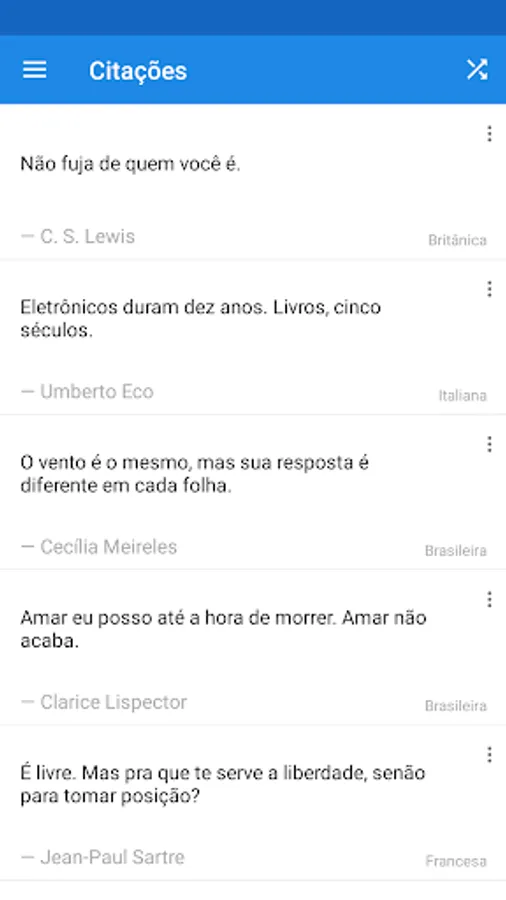 Share catchphrases on your social networks in image or text format simply and quickly. Literary Quotes is a perfect app to share quotes on Instagram, WhatsApp, Facebook and other social networks.