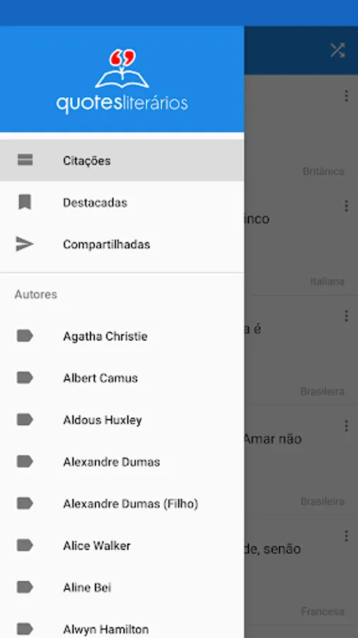 You know that special phrase you shared and now you want to find it again? No problem. The Literary Quotes app highlights your shared quotes so you can easily refer to them through the navigation menu.