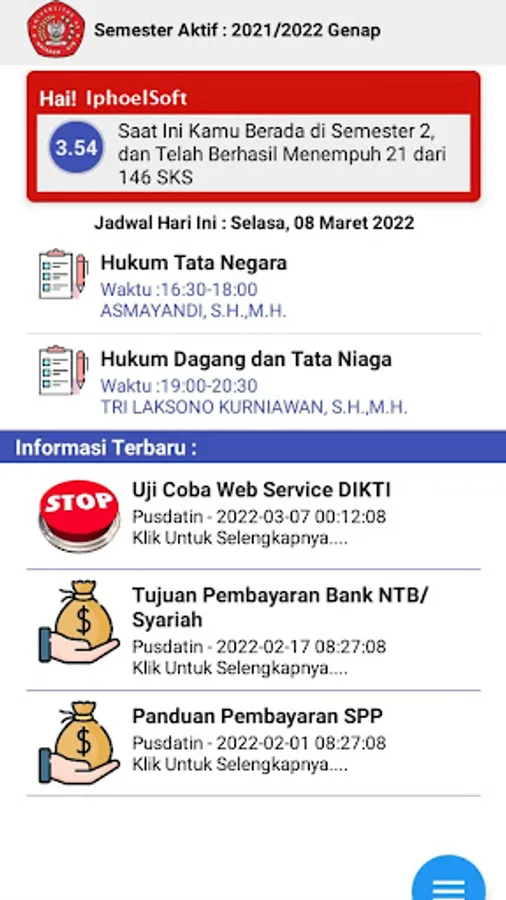 45 Mataram University Academic Information System which is integrated with the Neo Feeder 2022 Higher Education Database Web Service.
