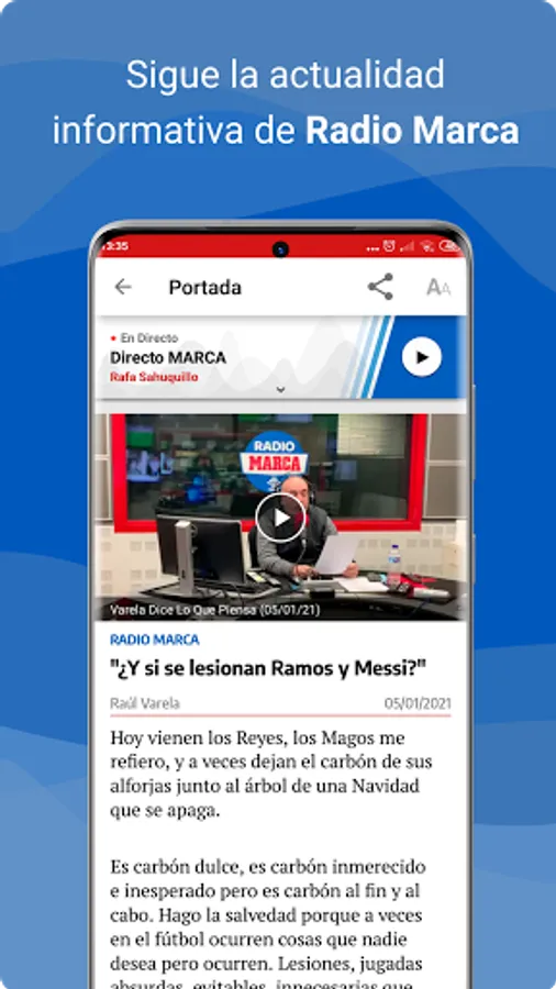 We invite you to join the community better informed of those who want to know everything in the world of sport ... As simple as connecting us with Radio Marca, a unique formula in the Spanish radio and the seal of MARCA, the best sports information factory of our country and one of the main references in the Spanish-speaking world.
