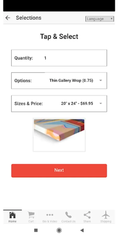 customer uploads photo and we print it on canvas. with options, framed, or rolled in a tube.