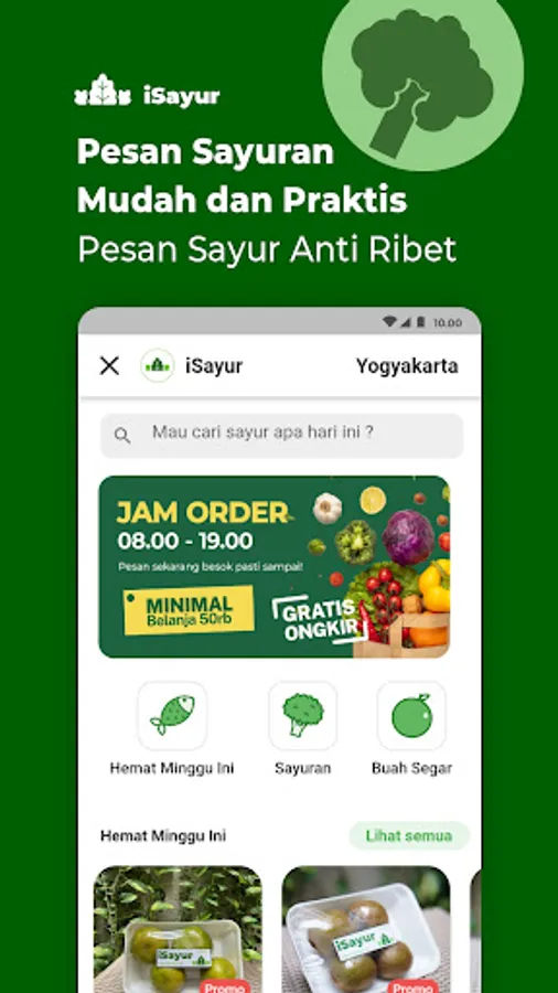 Want to buy vegetables but don't want to go out? Don't worry, iSayur provides various types of vegetables and basic needs for you. You just order based on your needs and it will be delivered the next day.