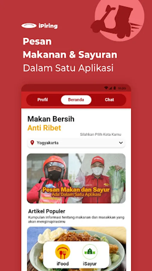 iPiring is a delivery application that guarantees free shipping for each customer. Based in Yogyakarta and only available in other branches such as Jambi and Solo, iPiring's mission is to provide basic daily needs such as food and vegetables to the Indonesian people. Solutions for the Busy.