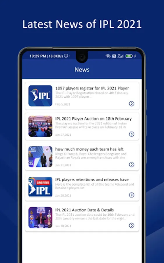 Welcome to the Cricgrid app. This app is bringing you a IPL live Auction and news in fast, fluid, responsive, loads in seconds. The app gives you information on the result of matches, information of teams and exclusive coverage of the IPL 2021.