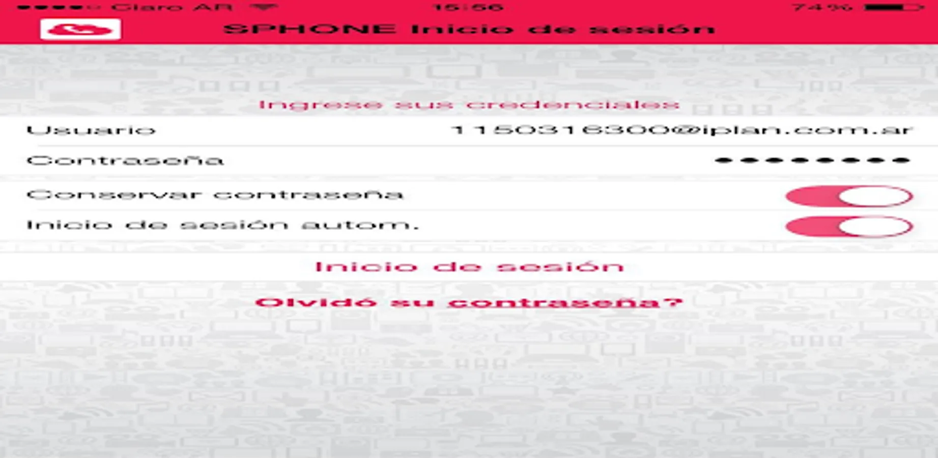 Enter the application with your phone number IPLAN @iplan.com.ar (example: 1150316300@iplan.com.ar) and the "WEB/SPHONE Key". You can change your WEB Password by entering cvi.iplan.com.ar.