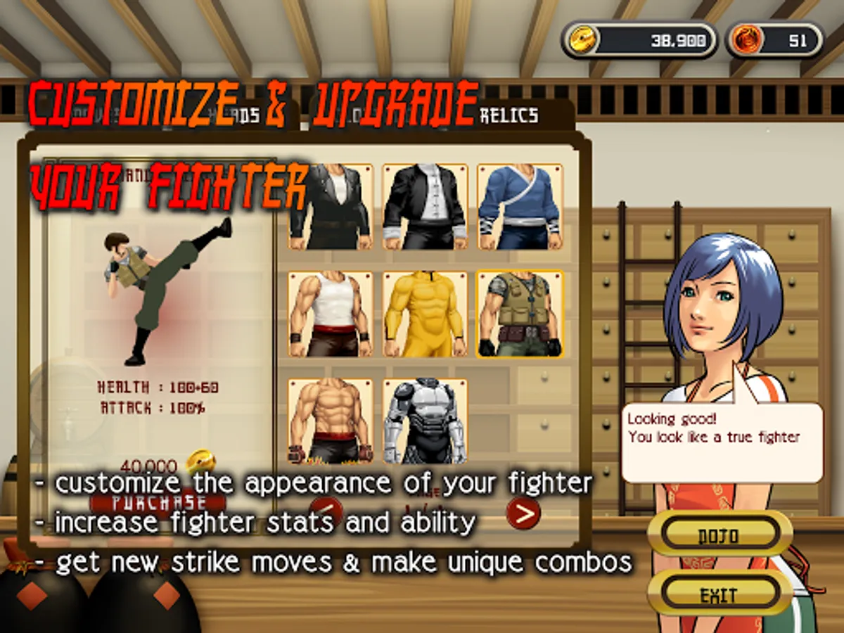 This isn't just a simple beat ‘ em up game, use different strike moves and make your own combos, upgrade and customize yourself to beat the enemies.