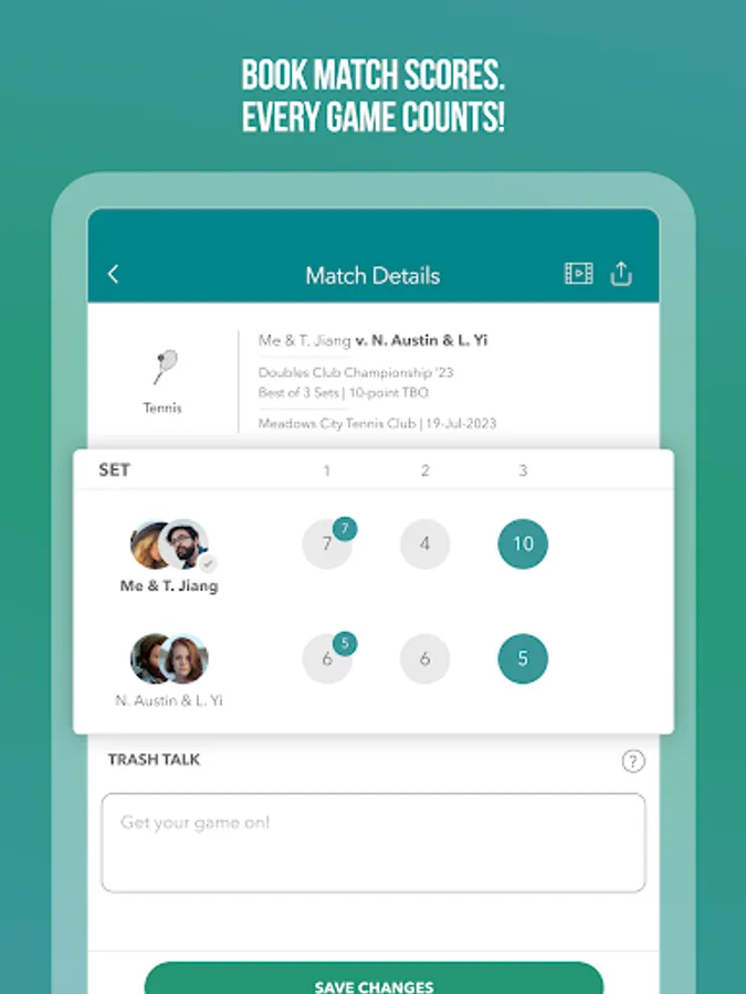 • Calibrate the kind of opponent(s), and doubles partner(s), you’d prefer now. Expand your local network of fellow players. Make new friends.