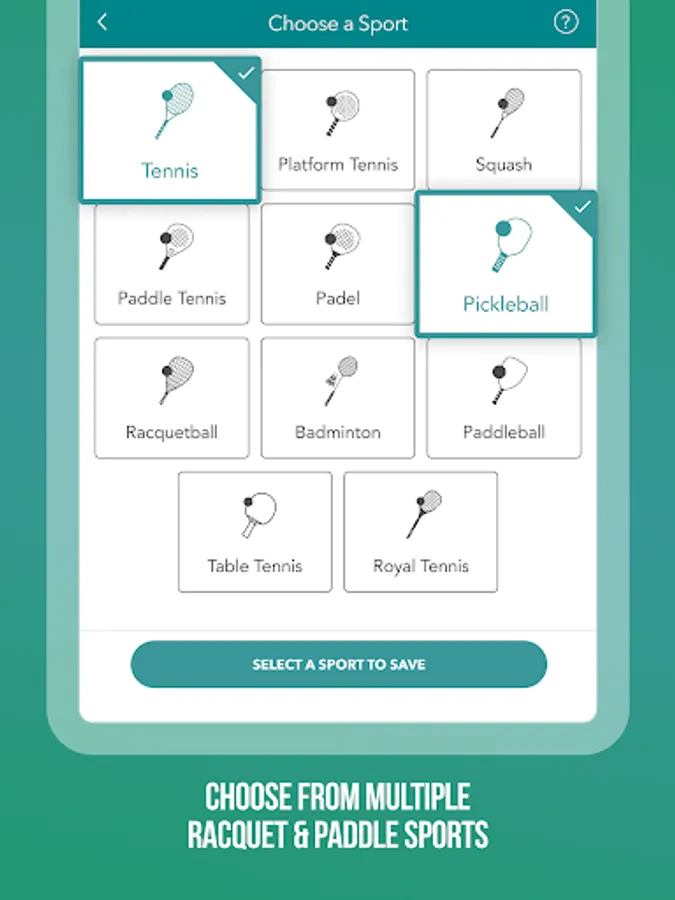 iPlayMe2 now supports eleven (11) of the most popular global racquet and paddle sports: Tennis, Pickleball, Padel, Squash, Racquetball, Badminton, Paddle Tennis, Platform Tennis, Paddleball, Court (Royal) Tennis, and even Table Tennis (Ping Pong). Play one, play many!
