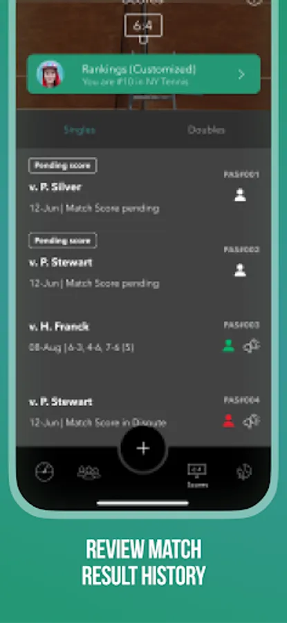 • Review others’ results and progression: iPlayMe2 displays match results from those you’re connected with, through your club, facility, local courts, and tournaments.