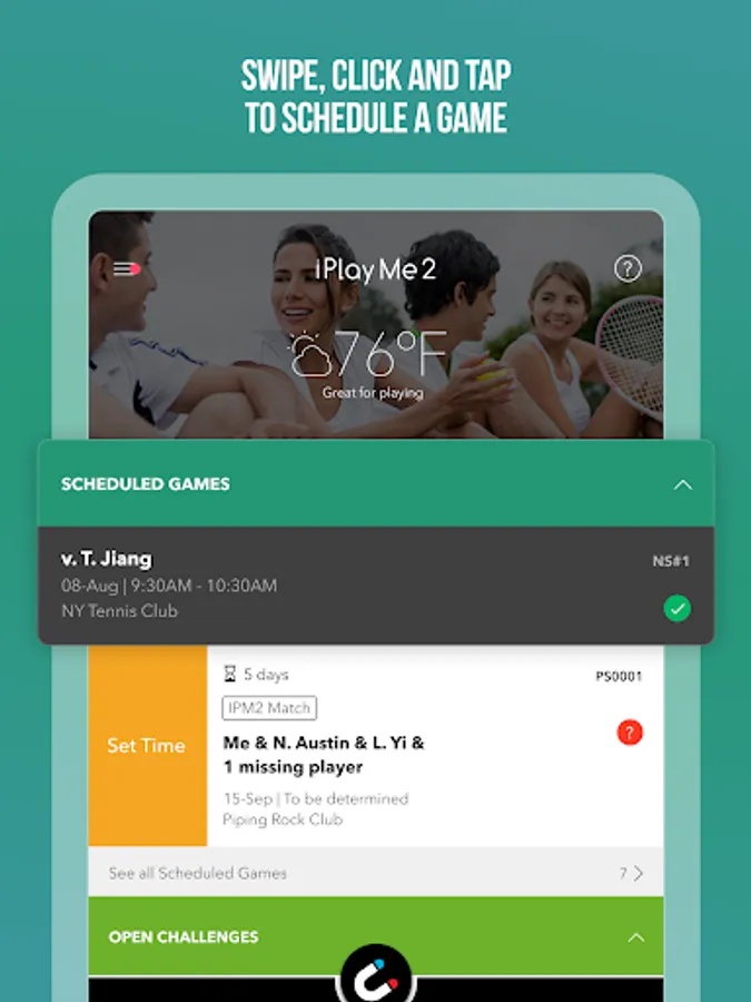 • Say goodbye to never-ending text threads, WhatsApp messages, and e-mails to ALL! Swipe, and serve! Tap, and Accept! Click, and Dink! Organizing a match has never been this easy, and efficient.