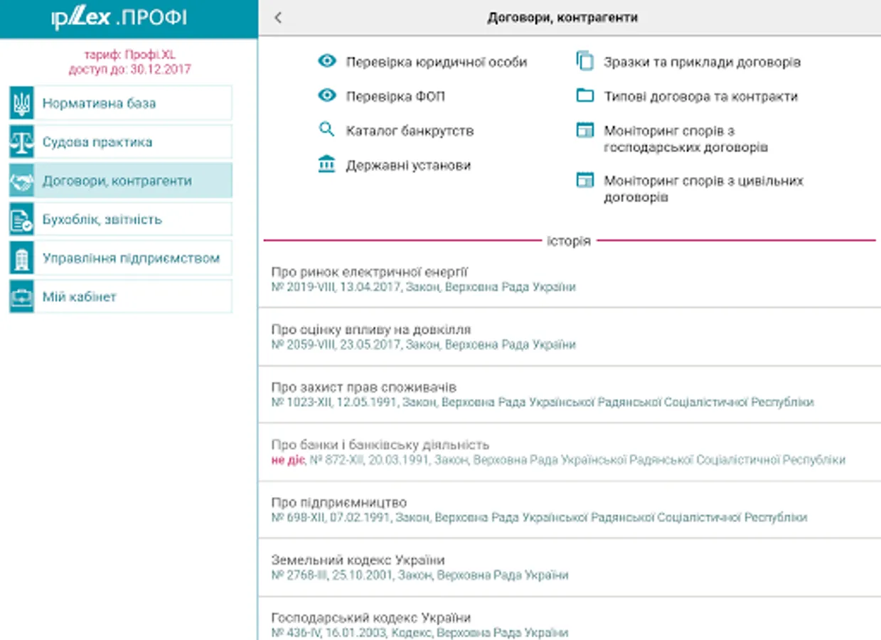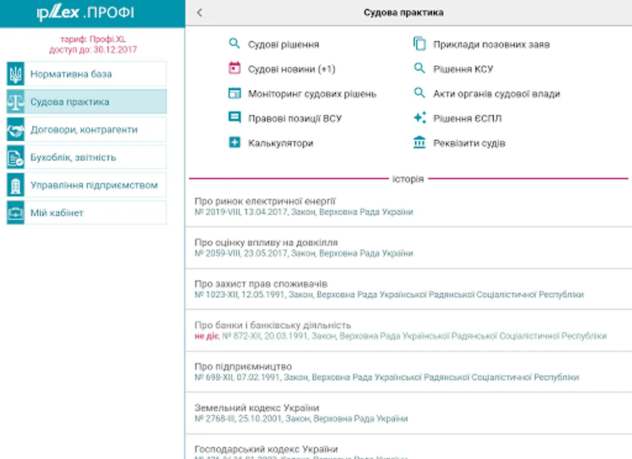 The application contains legislation, judicial practice and verification of counterparties, consultations, traffic rules.