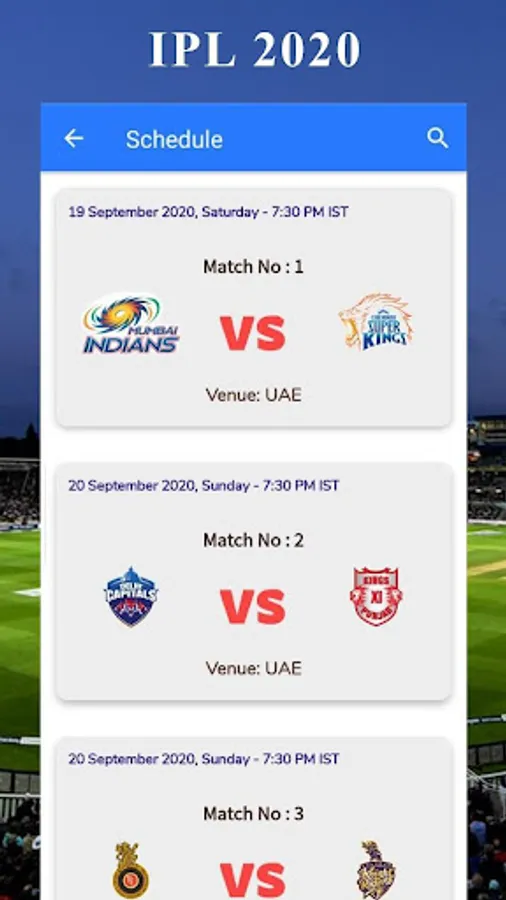 IPL Score Update 2020 - Daily(60 Matches) app is totally made for all IPL 2020 Fans. This app is totally free to download use and this app come's with many great features such as ipl 2020 schedule List, IPL Live Score, IPL Teams, IPL Champion Histroy etc.