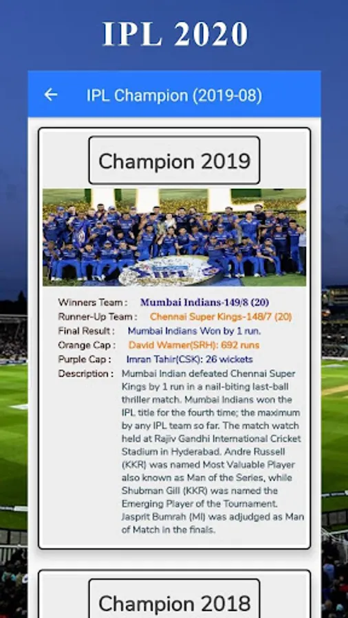 Hello Everyone Welcome to this app. As an IPL Fan, We know you are very exciting for Indian Premier League 2020 Season 13th.