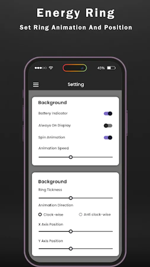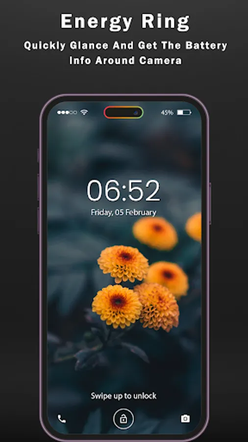 Main Features of Energy Ring - Camera Notch & Battery Indicator :