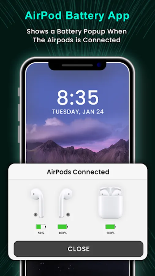 Air Battery - PodAir, AirPods Battery Status Level displays a pop-up battery interface when the user’s headset is connected to the phone. At the same time, the battery can be checked in the notification bar, status bar, desktop widgets and quick settings.