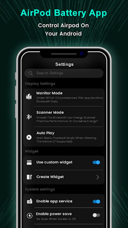 PodsBattery - AirPod Battery app is an APP developed to solve the problem that Android users cannot check the battery level when using AirPods Bluetooth headsets.