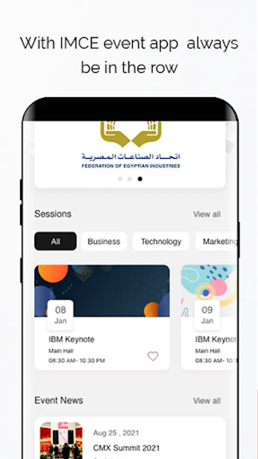 The International Manufacturing Convention and Exhibition is organized for the first-time in Egypt to offer investment opportunities in the Egyptian industrial sector. The official application for the event contains information about the event agenda, sessions, speakers and exhibitors. Download the application to get access to the event content.