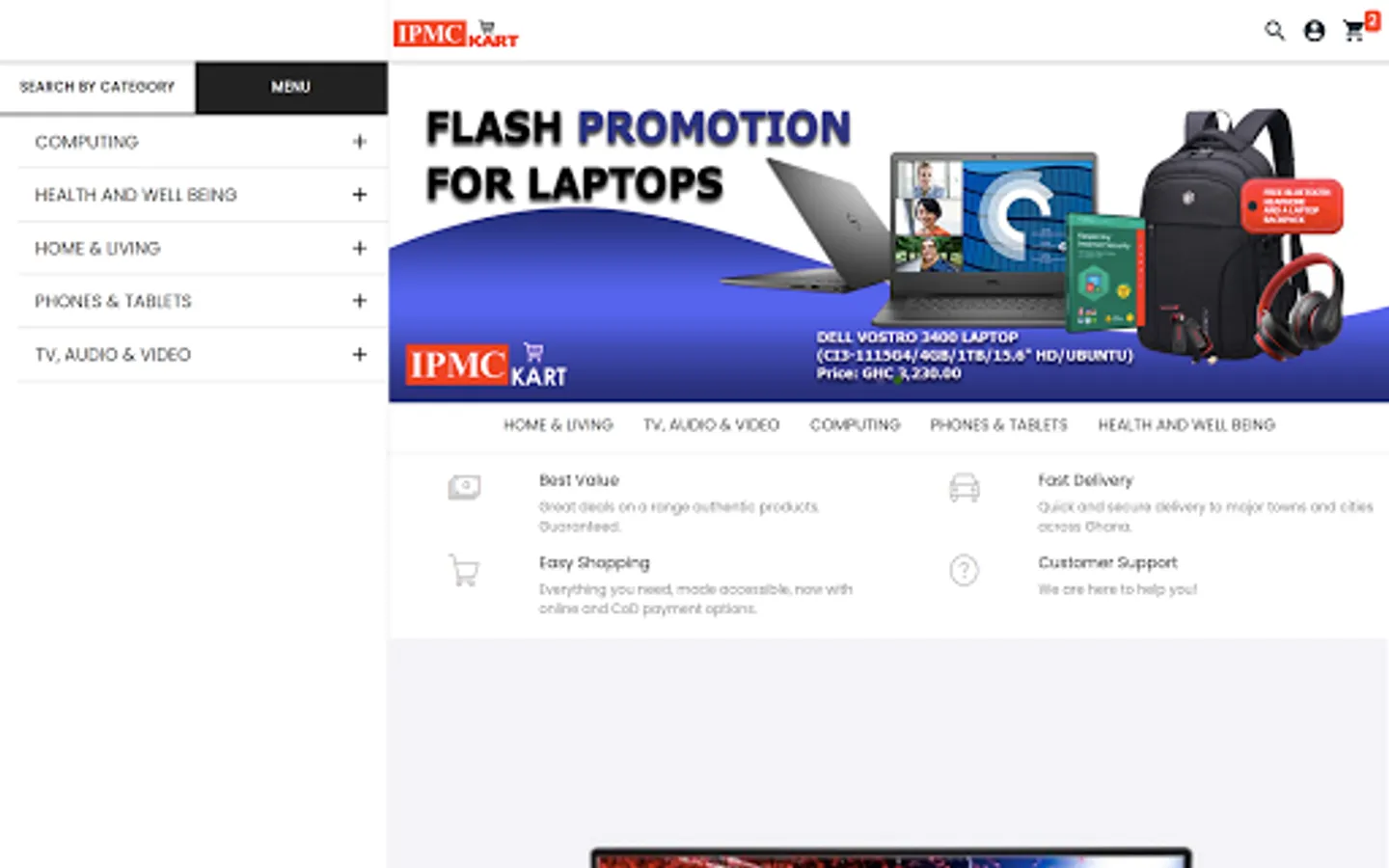 IPMC Kart is the latest offering from IPMC, offering Ghana a dependable Ecommerce platform to shop for a wide range of products ranging from computers, laptops, smartphones, printers and computer accessories, to home appliances, entertainment systems, kitchen appliances, and health & safety products.