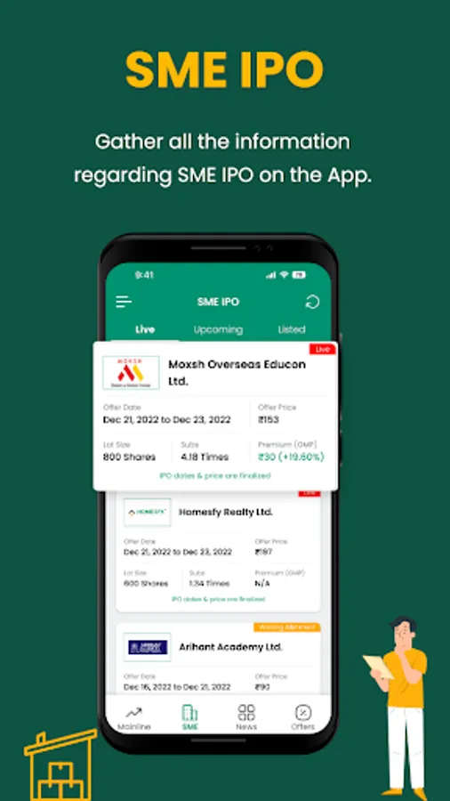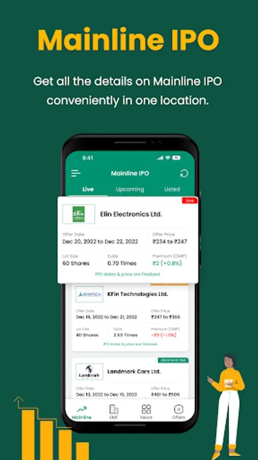 'IPODekho' is a mobile application that provides users with comprehensive information on Initial Public Offerings (IPOs) in India. With 'IPODekho,' you can keep up-to-date with the latest IPO news, details, alerts, and live subscriptions for both Mainline and SME IPOs.