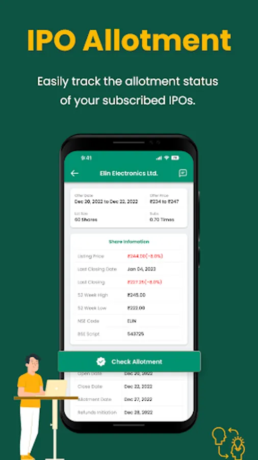 'IPODekho' also offers a messaging feature that connects you to a discussion forum where you can get advice from experts and other users. In addition, you'll receive notifications of new IPO additions and subscription and allotment status updates.