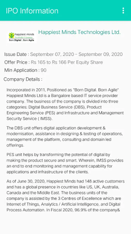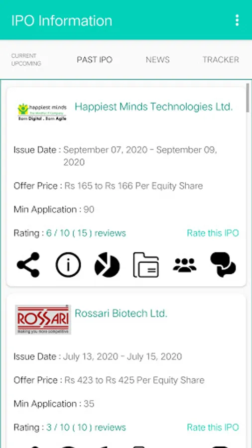 With this single application, you can keep watch on the IPO market with all IPO related information like IPO Issue price, IPO Issue date, IPO Issue Size, IPO status, IPO live subscription, IPO allotment status, IPO listing date, IPO listing price, etc.