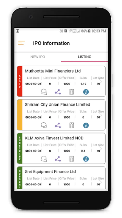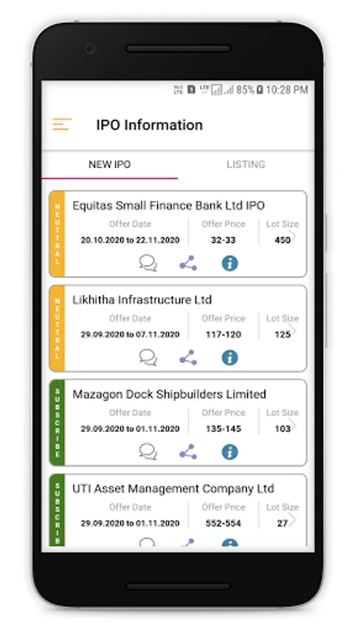 App also provides detail description for upcoming IPOs. So this may help you to find different investment options.