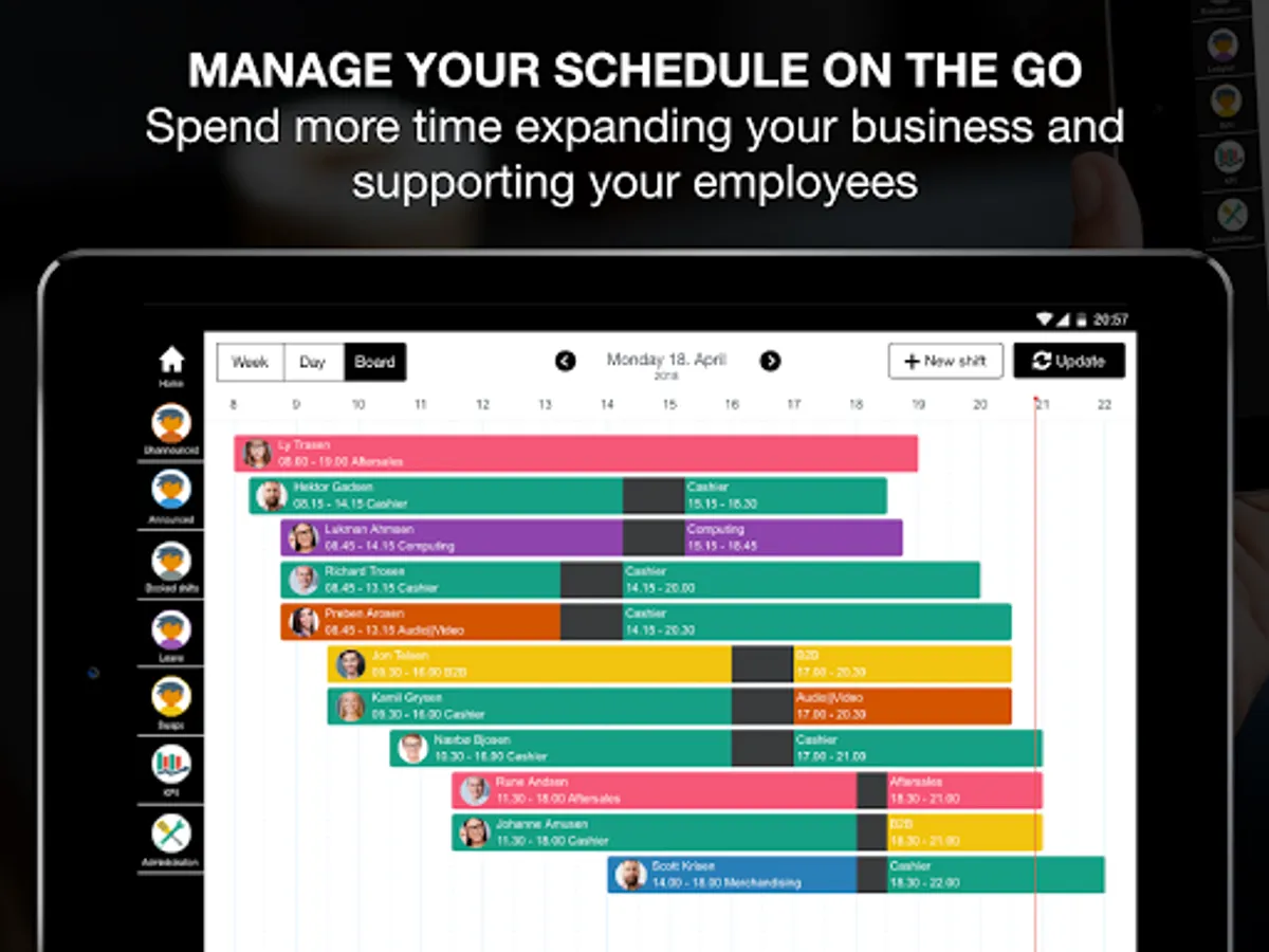 • Staff a vacant shift with just a click based on right competence, availability and see who wants to work extra