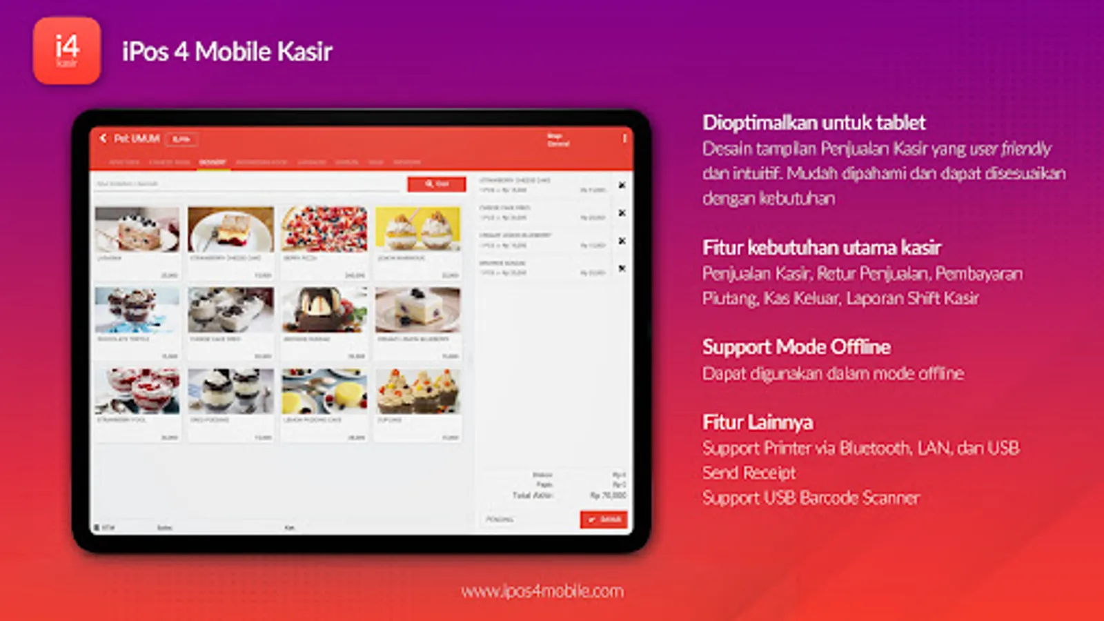 Aplikasi iPos 4 Mobile ini hanya memiliki fitur yang berkaitan dengan Penjualan Kasir. Cocok digunakan oleh staff bagian Penjualan di toko/outlet.