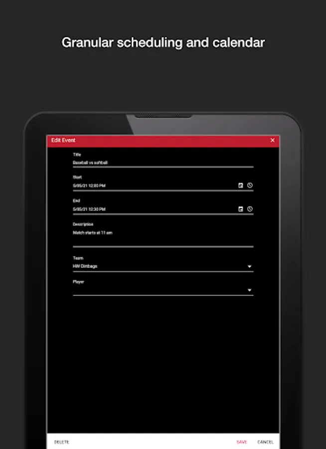 Schedule Events is an easy to use calendar feature used to input game times, practices and other events.