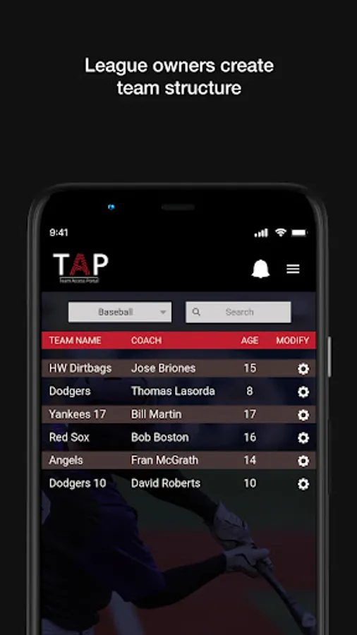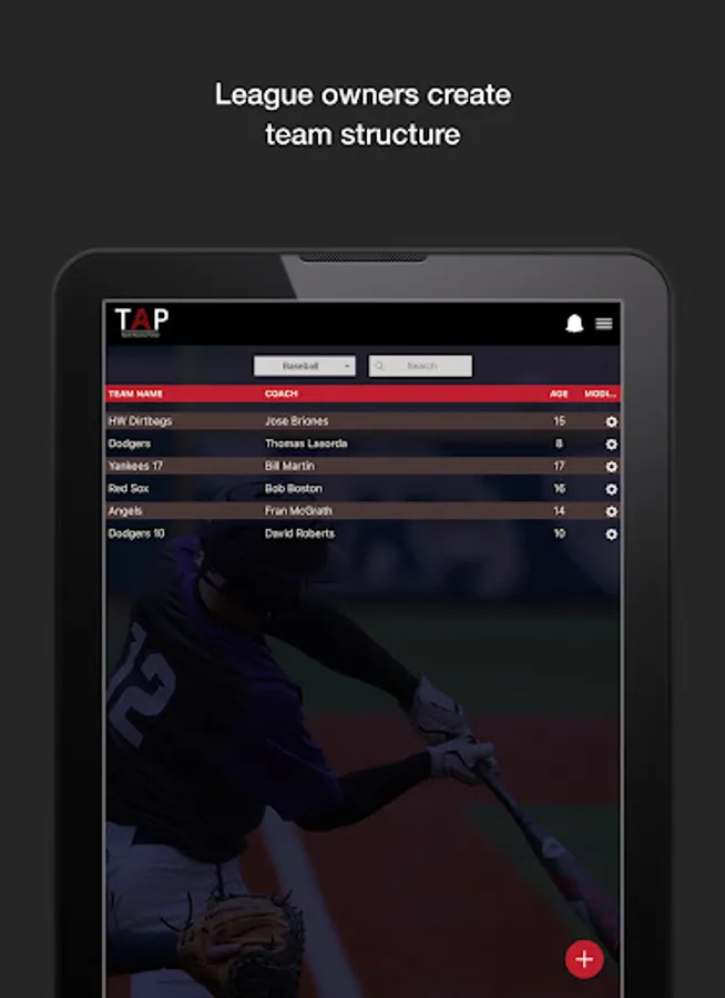 TAP is a sports focused app used by League Owners to create a structured organization and interface for sports teams, coaches, families, and athletes. Teams can be created for multiple sports and coaches are invited to download the TAP to easily invite players to join their teams.