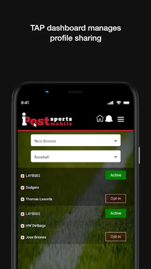 Profile Dashboard allows coaches to easily invite and managed player profile opt-ins.