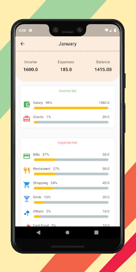 • See your spending distribution on the nice and informative chart
