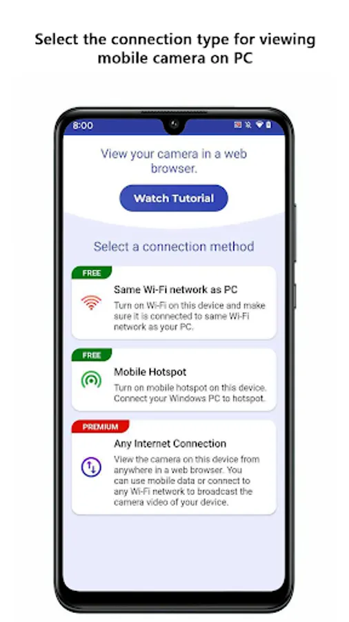 • View your mobile camera in the browser or in a video surveillance software, such as -