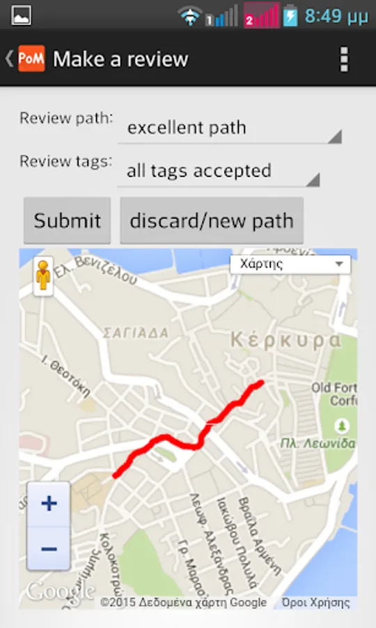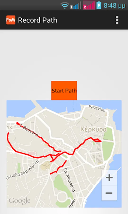 The purpose of this application is to help in gathering data for the creation of a pedestrian map of Corfu town. The application tries to achieve it through the gamification of it, which aims to motivate users to upload paths during walking. Paths are recorded in GPX files so users can, if they want, to upload them to their account at Dropbox. Also, the application allows users to comment on routes which have been uploaded by other users, so that the malicious data to be discarded. Until this time a rudimentary map has been created, for the city of Corfu, to show how the pedestrian map will look like in final form.