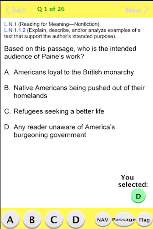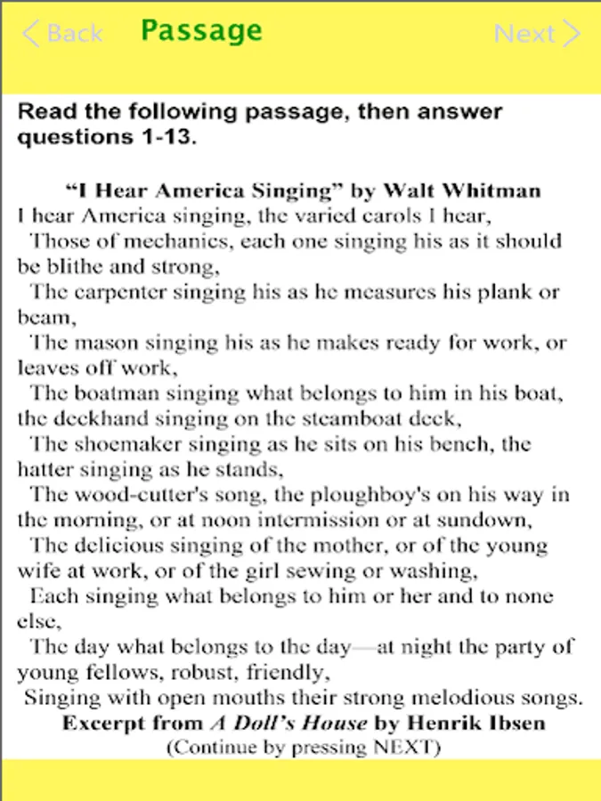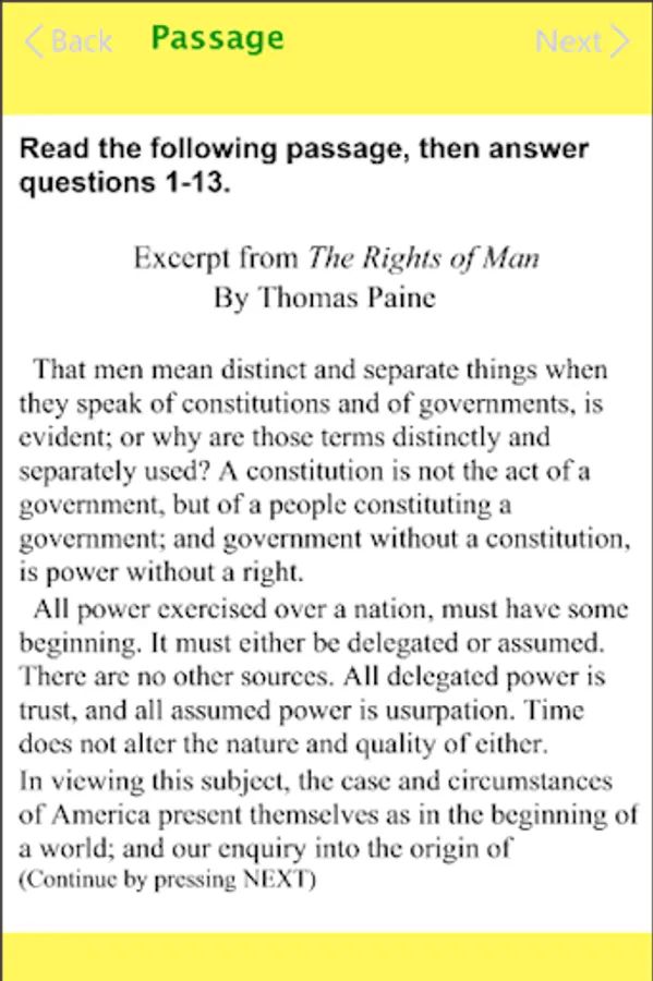 This app has two practice tests, each with two modules for a total of 104 multiple choice questions and their answers. Some of the multiple choice questions emulate constructed-response type questions.