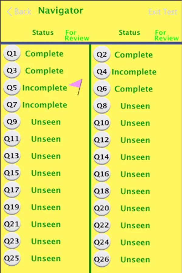 * Navigator to select questions in any order and status