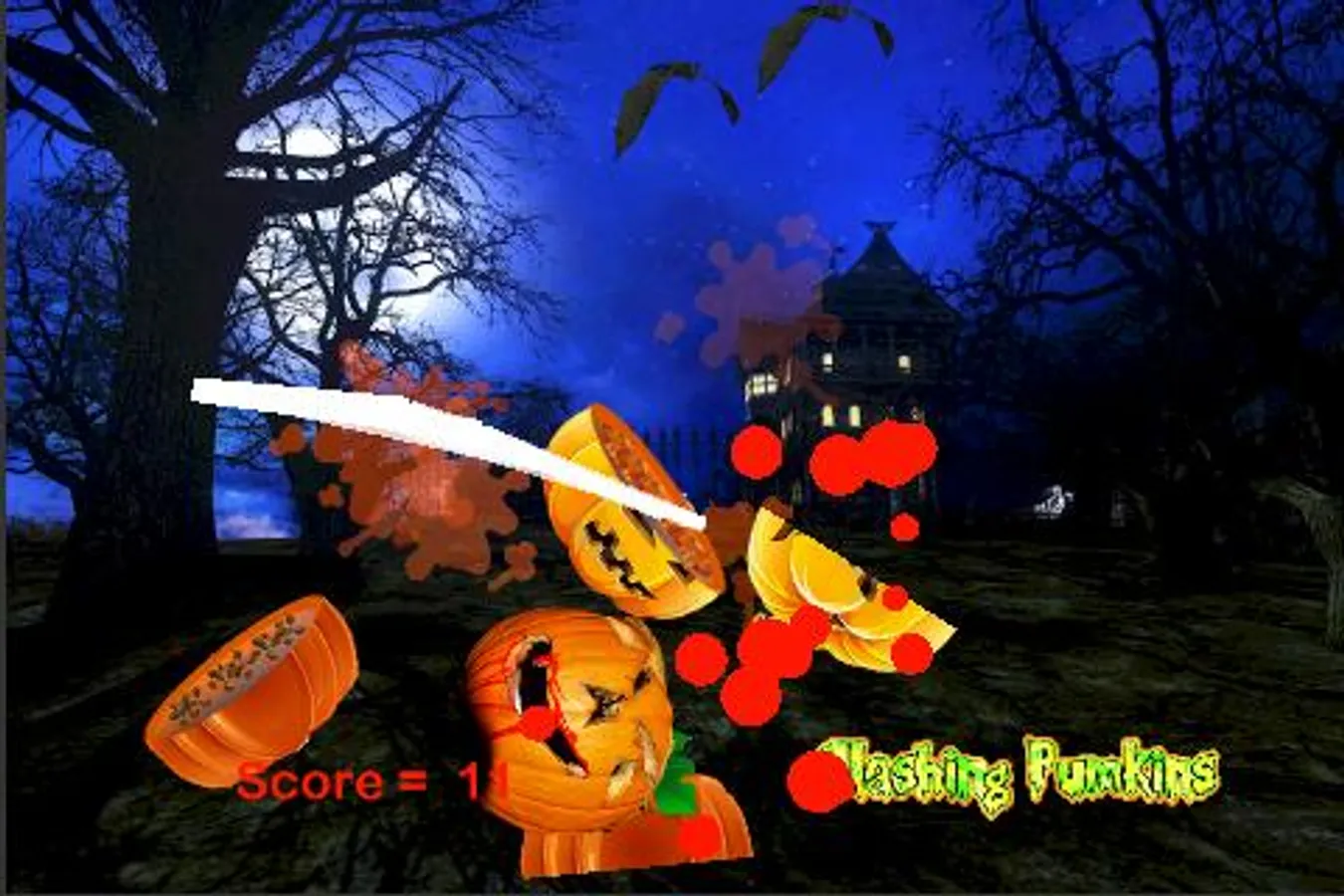 The challenge is to score as high as you can by using your finger to slash as many pumpkins as you can. But be careful, there is a bomb in the background. If you slash it, the game is over. As you score higher, the game speeds up and makes avoiding the bomb all the more difficult.
