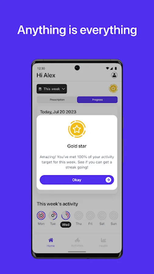 • Weekly goals start at just 3 sessions of 10 minutes of low intensity activity per week