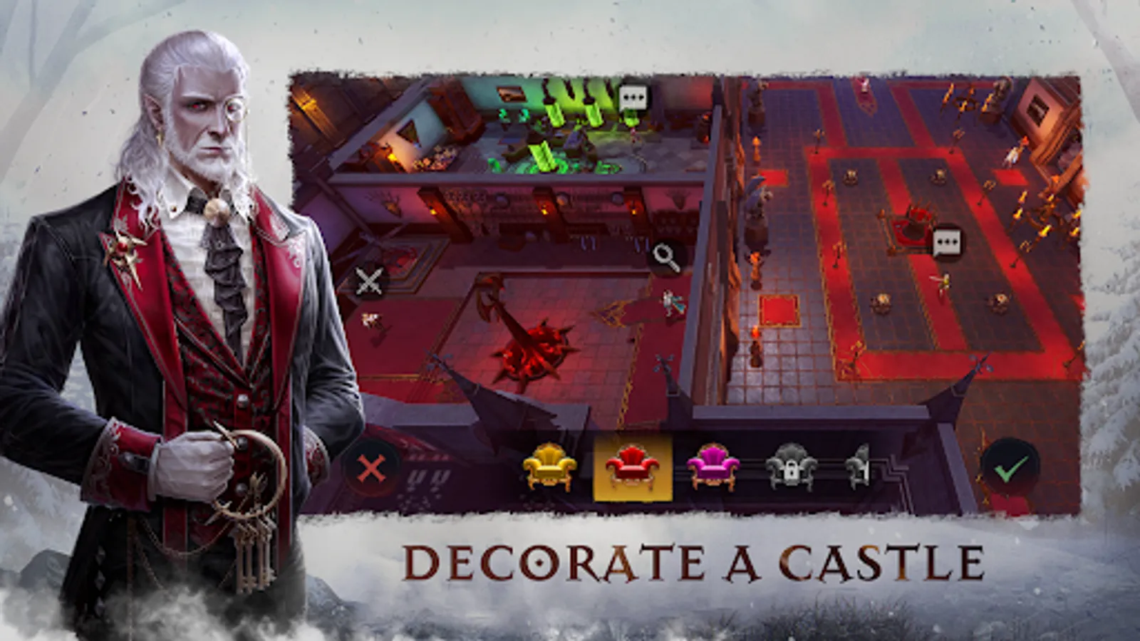 Players will explore Dracula's castle, learn the secrets of the Vampires, and gradually take control of the castle. Control your thirst for blood, avoid sunlight, and become a true Vampire earl!