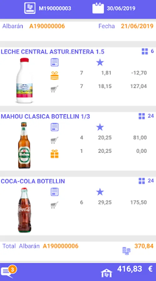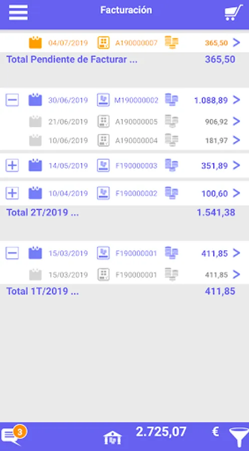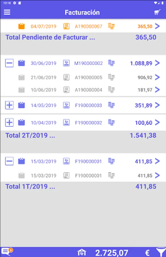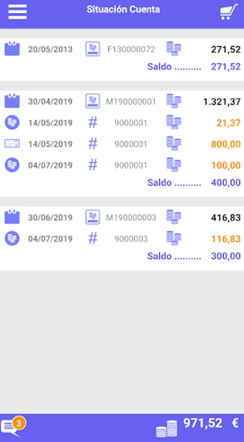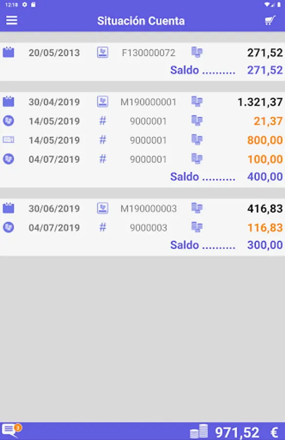 * Consultation of outstanding debts by invoice with details of the merchandise served